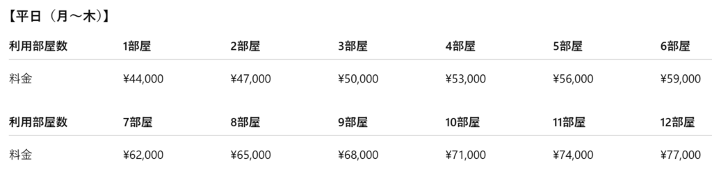 ご利用部屋数に応じて料金が決まります: